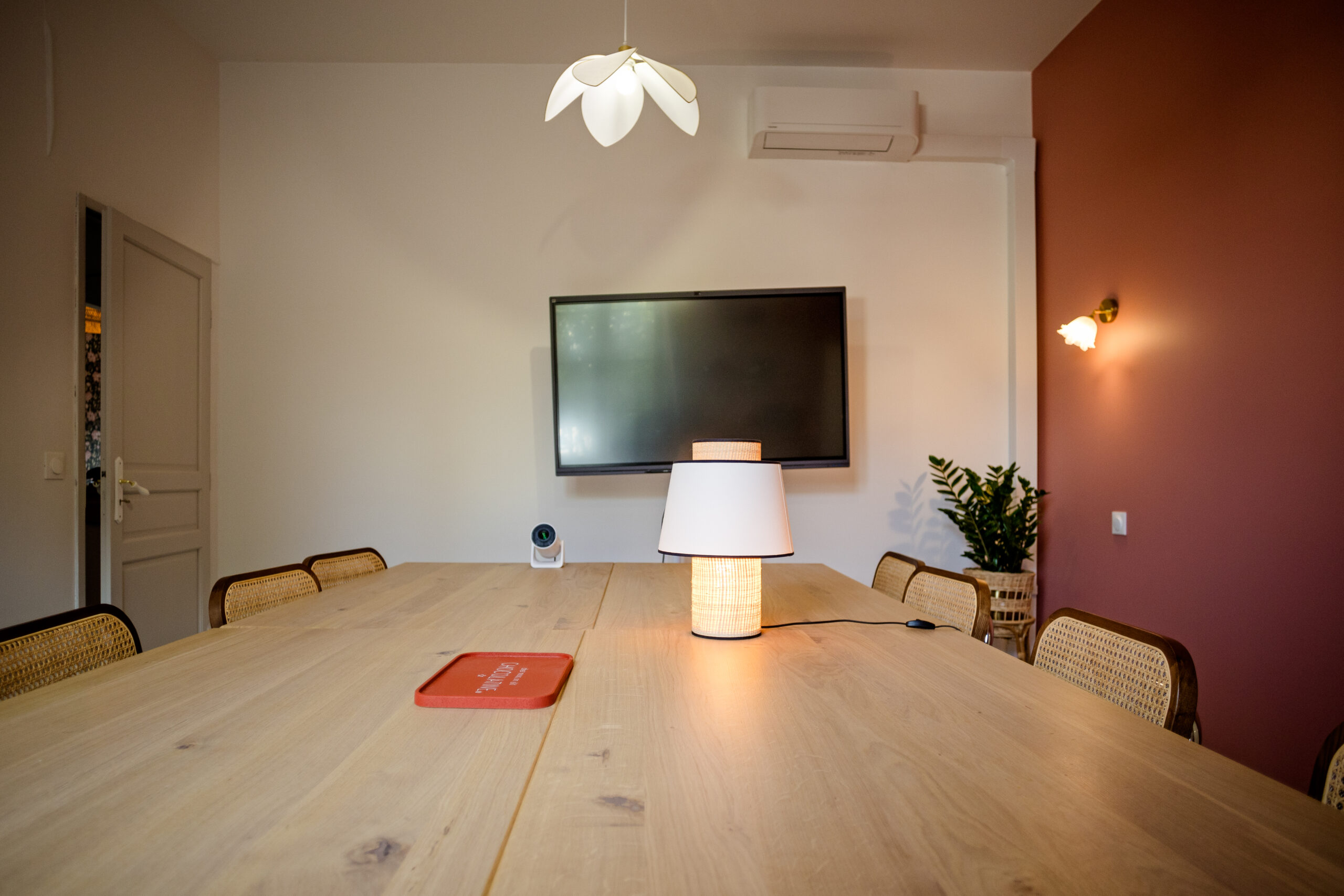 La salle de réunion Rose un choix idéal pour tous celles et ceux qui cherchent une salle de réunion à Toulouse originale et toute équipée.